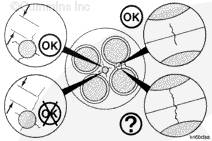 注: 氣門之間的裂紋兩端必須可見。如果裂紋的一端已延伸至氣門座孔(氣門座后),缸蓋的狀況可能有問題。確保缸蓋可以繼續(xù)使用,拆下氣門和氣門座。