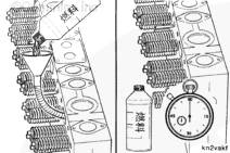 如果在 30 秒內(nèi)有一滴燃油滴出或沿缸蓋表面往下流,則表明必須重新加工排氣門和氣門座的表面。