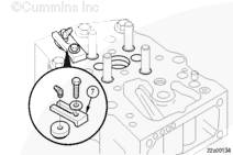如果缸蓋安裝在發(fā)動機上,確保進氣門處在待檢缸蓋的“閉合”位置。這可通過拖動發(fā)動機實現(xiàn)。當(dāng)搖臂松動時,這表明進氣門閉合。