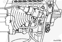將鑰匙開(kāi)關(guān)轉(zhuǎn)到 OFF(斷開(kāi))位置。從發(fā)動(dòng)機(jī)線束上斷開(kāi) 2-針 EHAB 裝置接頭。