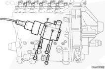 將兩個(gè) O 形圈放置在 Bosch® “EHAB” 裝置上。將 Bosch® EHAB 裝置安裝到噴油泵殼體上。
