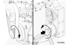 按照皮帶輪上的箭頭指示,用盤車工具順時(shí)針轉(zhuǎn)動(dòng)發(fā)動(dòng)機(jī)。