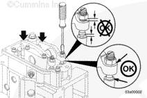 完全設(shè)置好頂置機(jī)構(gòu)后,檢查調(diào)整螺釘?shù)耐怀隽?。必須大約有三圈螺紋在鎖緊螺母之上。