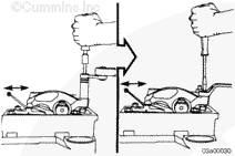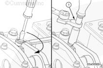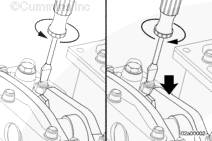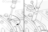 如果沒(méi)有拆下?lián)u臂并再次安裝,在有問(wèn)題的兩個(gè)氣缸上擺動(dòng)氣門搖臂。如果感到氣缸的兩個(gè)搖臂都已松動(dòng),則可以開始調(diào)節(jié)其跨接壓板和氣門。