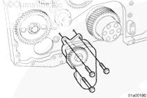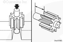 如果從軸上拆下主泵驅(qū)動(dòng)齒輪,支撐驅(qū)動(dòng)齒輪,使用手扳壓機(jī)將軸推過(guò)齒輪至規(guī)定位置。