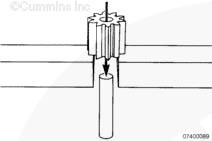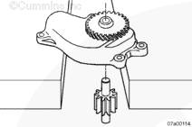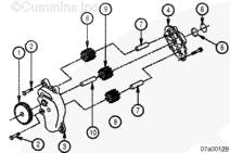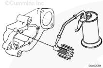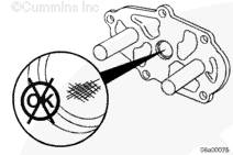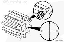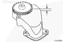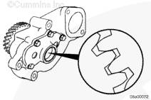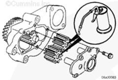 通過(guò)緩慢轉(zhuǎn)動(dòng)驅(qū)動(dòng)齒輪和檢查泵齒輪是否損壞來(lái)檢查機(jī)油泵能否繼續(xù)使用。如果機(jī)油泵內(nèi)有零件損壞,則此泵必須大修或更換。有關(guān)大修的詳細(xì)信息,請(qǐng)參考《 QST30 大修手冊(cè)》(公告號(hào) 3666190)中的第 7 節(jié)。