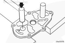 注: 將兩個(gè)機(jī)油泵從動(dòng)齒輪軸壓入蓋中。