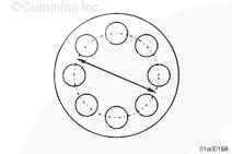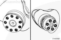 QST30 發(fā)動機曲軸前端的螺栓孔采用滾絲螺栓。清潔滾絲螺紋時,請用溶劑沖洗。用壓縮空氣吹干螺紋。如果還需要附加清潔,用尼龍毛刷進行洗刷。