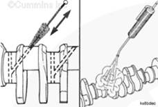 注: 新曲軸涂覆有厚厚的防護油。使用溶劑徹底去除涂層。在發(fā)動機上安裝曲軸之前,先刷出或沖出機油油道中的包裝碎屑。