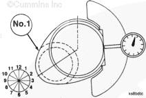 4. 時鐘位置:時鐘位置是指軸頸最高千分表總讀數(shù)的位置。即從曲軸前端觀察時,比較其與 1 號曲軸銷的角度關(guān)系。在示例中,曲軸銷處在 8 點鐘位置。這就是被測軸頸的時鐘位置。