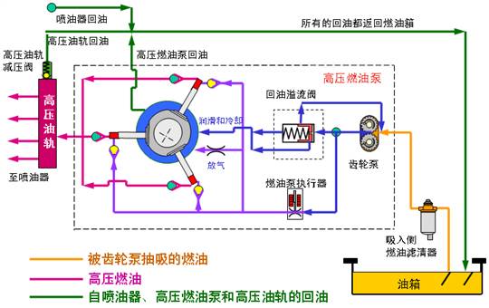 • 部分燃油經(jīng)燃油溢流閥去潤滑高壓燃油泵