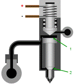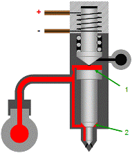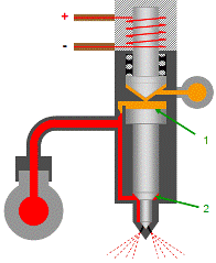 • 相同的燃油壓強施加在柱塞頂面 (1)和針閥凸臺區(qū)域 (2) 上
