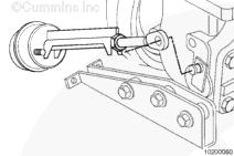 將控制桿防松螺母擰緊到末端連桿上。切斷扎條,并除去扎條和墊片。廢棄扎條。繼續(xù)按同一方向轉動防松螺母,并擰緊在末端連桿上。