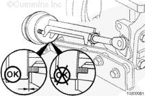 從渦輪增壓器上拆下執(zhí)行器總成、旋轉末端連桿并安裝執(zhí)行器來調節(jié)執(zhí)行器總成的長度,使執(zhí)行器底面剛好安裝在支架安裝螺柱上方,間隙不足 0.5 mm [0.020 in]。