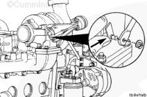 在發(fā)動機機油中,每 38 L [10 gal] 加入 1 個單位熒光示蹤劑(零件號 3376891)。使發(fā)動機以低怠速運轉 10 分鐘。