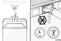 注: 在測(cè)試?yán)鋮s液中是否有空氣之前,起動(dòng)康明斯ISB3.9發(fā)動(dòng)機(jī)并讓其運(yùn)轉(zhuǎn) 5 分鐘,這會(huì)使所有滯留空氣從冷卻系統(tǒng)排出。