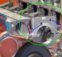 主軸承蓋裝反時(shí),A處與B處干涉,無法裝配,安裝主軸承蓋要注意編號(hào)。
