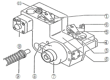 1.停車桿,2.高速限位螺釘,3.加速桿,4.怠速限位螺釘,5.滿負荷調(diào)速調(diào)整器,6.調(diào)速器殼體,7.調(diào)速器驅(qū)動齒輪,8.齒條控制桿,9.齒條及彈簧,10.LDA,11.加濃電磁閥