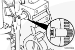 當發(fā)動機在上止點位置時,可以設(shè)定第 1、3 和 5 缸的制動器間隙。使用兩個扳手,固定調(diào)整螺母并松開第 1、3 和 5 缸的制動器上的鎖緊螺母。