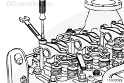使用盤車工具(零件號 3824591 )或等同物,將曲軸轉(zhuǎn)動 360 度,測量搖臂 2E、3l、4E、5l、6l 和 6E 的間隙。如果間隙超出技術(shù)規(guī)范,則重設(shè)間隙。