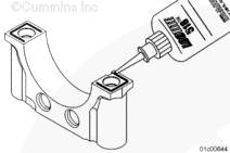 如圖所示,在每個(gè)康明斯ISX15 CM2250發(fā)動(dòng)機(jī)主軸承蓋上的 2 個(gè)主軸承蓋表面涂上一層 U 形 Loctite™ 518 螺紋密封膠。