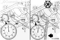 若要測(cè)量康明斯ISX15 CM2250發(fā)動(dòng)機(jī)曲軸的軸向間隙,應(yīng)在油底殼安裝法蘭上安裝千分表。