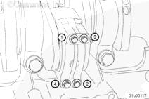 將康明斯ISX15 CM2250發(fā)動(dòng)機(jī)主軸承蓋上的兩個(gè)螺釘擰緊到 203 N•m [150 ft-lb]。