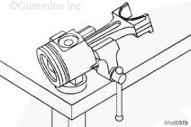 安裝康明斯ISX15 CM2250發(fā)動機(jī)活塞環(huán)時,使用臺鉗安裝連桿使總成保持在水平位置。