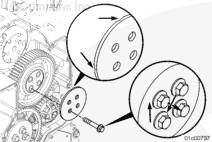 注: 此時(shí)氣門凸輪軸齒輪仍是松馳安裝,以便將可調(diào)整惰輪正確定位。不要座入齒輪。