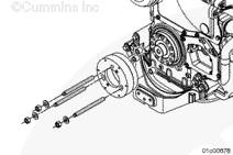 在將康明斯ISX15 CM2250發(fā)動機蓋固定到位的同時,用三個 M8 螺釘,一個六角螺母和兩個 M12 螺釘安裝下齒輪室蓋并手動擰緊。