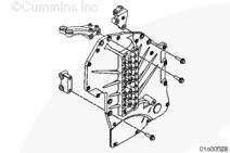 使用康明斯ISX15 CM2250發(fā)動機(jī)提升設(shè)備將齒輪室蓋安裝到下部三個(gè)雙頭螺柱上。