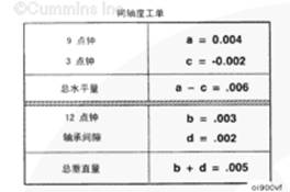 總垂直量等于 12 點(diǎn)鐘位置的讀數(shù) (b) 加上軸承間隙 (d)。