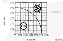 使用直尺,找到總水平量和總垂直量值二者的交點(diǎn)。交點(diǎn)必須落在飛輪殼同心度要求的陰影區(qū)域內(nèi)才符合技術(shù)規(guī)范。