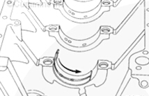注: 在將曲軸放置在缸體中時(shí),確保曲軸前齒輪與機(jī)油泵齒輪嚙合(如果以前未拆下)。