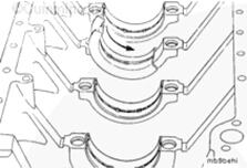 注: 安裝時(shí)蓋上的編號(hào)必須與缸體內(nèi)軸承鞍座的編號(hào)一致。主軸承鞍座的鎖舌和軸承蓋必須處于同側(cè)。