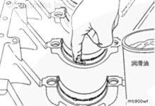 在康明斯B3.9、B4.5、B4.5 RGT 和 B5.9 發(fā)動(dòng)機(jī)主軸承的曲軸側(cè)和止推軸承表面上涂抹一層裝配潤滑劑(零件號(hào) 3163087)。