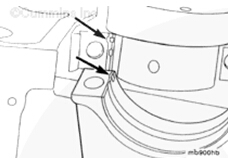 安裝康明斯B3.9、B4.5、B4.5 RGT 和 B5.9 發(fā)動(dòng)機(jī)主軸承蓋。確保主軸承蓋上的環(huán)形定位銷對(duì)準(zhǔn)缸體上相應(yīng)的孔