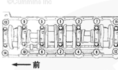 注: 右邊的順序用于 6 缸發(fā)動(dòng)機(jī)。對(duì)于 4 缸發(fā)動(dòng)機(jī),對(duì) 5 個(gè)主軸承蓋使用相同的順序。