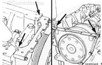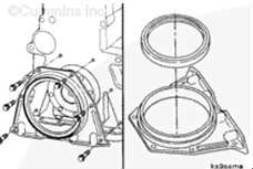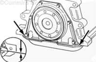對(duì)于前齒輪系康明斯發(fā)動(dòng)機(jī),曲軸后油封托架安裝在缸體后部,以蓋住曲軸后油封。對(duì)于后齒輪系發(fā)動(dòng)機(jī),曲軸后油封安裝在飛輪殼中