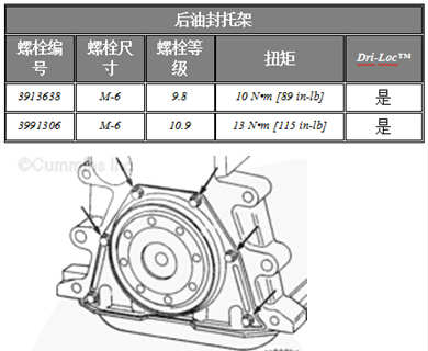 而且,在安裝康明斯B3.9、B4.5、B4.5 RGT 和 B5.9 發(fā)動(dòng)機(jī)曲軸后油封托架之前可以在此聯(lián)接點(diǎn)上涂一薄層密封膠(零件號(hào) 3164067)。必須在涂上密封膠后的 10 分鐘內(nèi)安裝后油封托架。