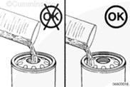 向新康明斯發(fā)動機濾清器中加入清潔的柴油。