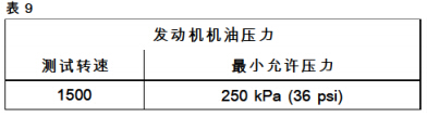 4請參閱表9以確定發(fā)動機機油壓力是否可以接受。