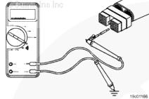 調(diào)整萬用表以便測量電阻。將測試導(dǎo)線插入 OEM 線束接頭的巡航控制 ON/OFF 開關(guān)輸入觸針,然后將其連接到萬用表表筆上。從鱷魚夾上拆下另一根萬用表表筆,然后將其接觸康明斯ISF3.8 CM2220發(fā)動(dòng)機(jī)缸體接地。