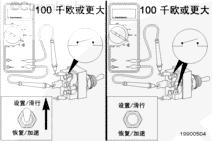 開關(guān)處于 RESUME/ACCEL(恢復(fù)/加速)位置時(shí),也可增加車輛巡航速度。選擇開關(guān)保持在 RESUME/ACCEL(恢復(fù)/加速)位置時(shí),車速將增加。而釋放此開關(guān)后,巡航速度就被重新設(shè)置。