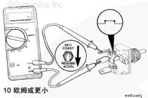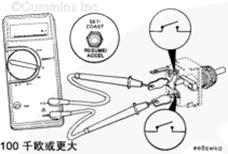 當(dāng)開關(guān)保持在 SET/COAST(設(shè)置/滑行)位置時(shí),萬用表必須顯示閉路特征(10 歐姆或更?。?。