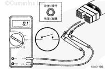 將測試導(dǎo)線插入原始設(shè)備制造商 (OEM) 線束接頭的巡航控制 ON/OFF 開關(guān)信號觸針,并且將其與萬用表表筆相連。將另一根表筆接觸康明斯ISF3.8 CM2220發(fā)動(dòng)機(jī)缸體接地。