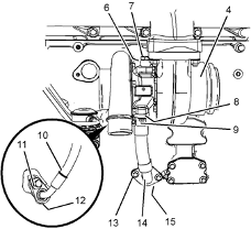 10.將新密封墊(15)(未顯示)定位在管組件(10)的法蘭和Perkins1106A/C發(fā)動機缸體之間。安裝螺栓(13)并用手?jǐn)Q緊。