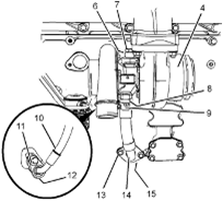 9將管組件(14)安裝到Perkins1106A/C發(fā)動機渦輪增壓器(4)上。安裝螺栓(9)并用手?jǐn)Q緊。
