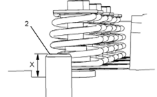 5檢查氣門導(dǎo)管(2)的凸出(X)。氣門導(dǎo)管應(yīng)比Perkins1106A/C發(fā)動(dòng)機(jī)氣門彈簧凹槽高出12.7mm(0.500in)。有關(guān)更多資料,請(qǐng)參閱《技術(shù)規(guī)格》,“Perkins1106A/C發(fā)動(dòng)機(jī)缸蓋氣門”。