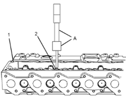 7檢查氣門導(dǎo)管(2)的精加工直徑。有關(guān)更多資料,請(qǐng)參閱《技術(shù)規(guī)格》,“Perkins1106A/C發(fā)動(dòng)機(jī)缸蓋-氣門”。